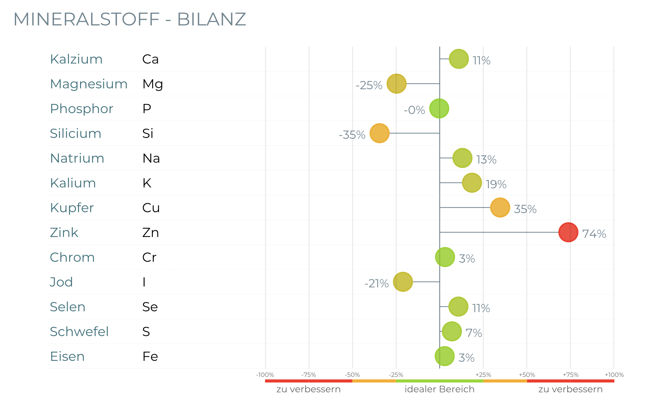 • Mineralstoffe und Spurenelemente: Ermittlung von essenziellen Nährstoffen, die für zahlreiche Körperfunktionen wichtig sind.
